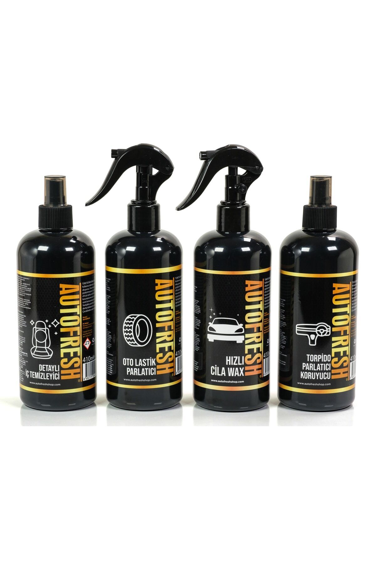 Oto lastik ve tampon parlatıcı temizleyici 425 ml ; hızlı cila koruyucu wax 425 ml ; detaylı iç temizleyici 425 ml ; torpido göğüslük parlatıcı koruyucu 425 ml ; sünger ve mikro fiber bez hediyeli ; yüksek kaliteli üretim ; yılların markası ;