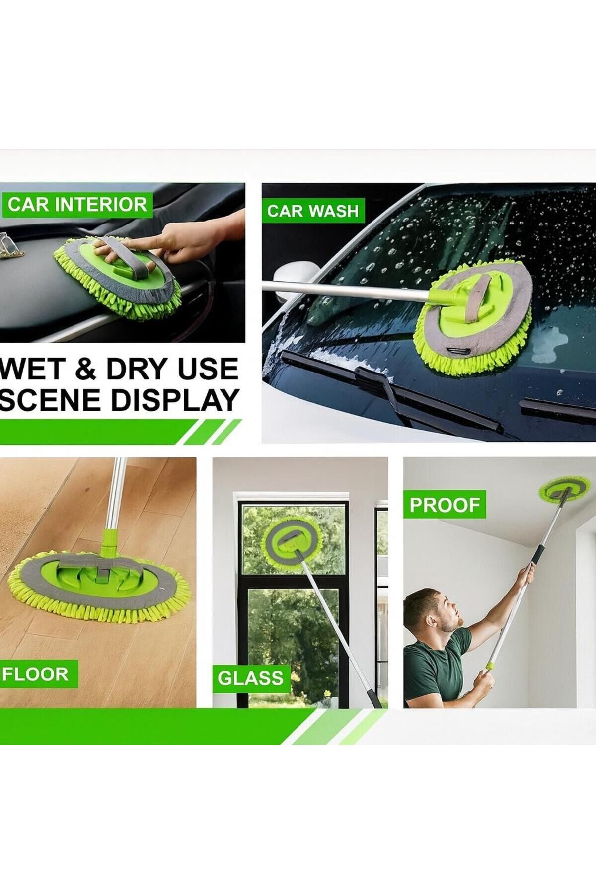 Araç Temizleme Mop Saplı Mikrofiber Yıkama ve Toz Alma Aparatı Islak/Kuru Kullanım