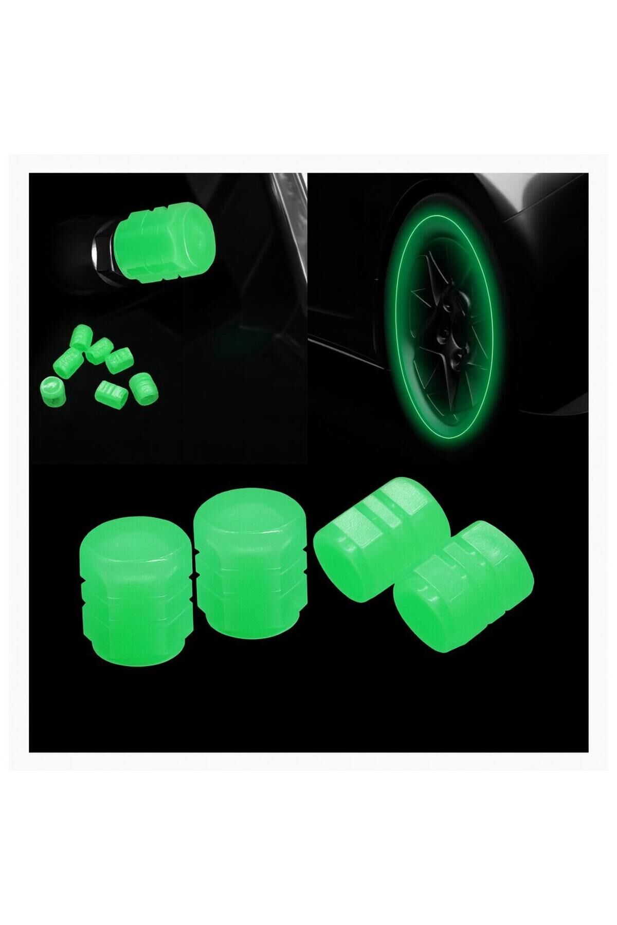 Karanlıkta Parlayan Neon Yeşil Sibop Kapağı 4’lü Set – Tüm Araçlara Uyumlu
