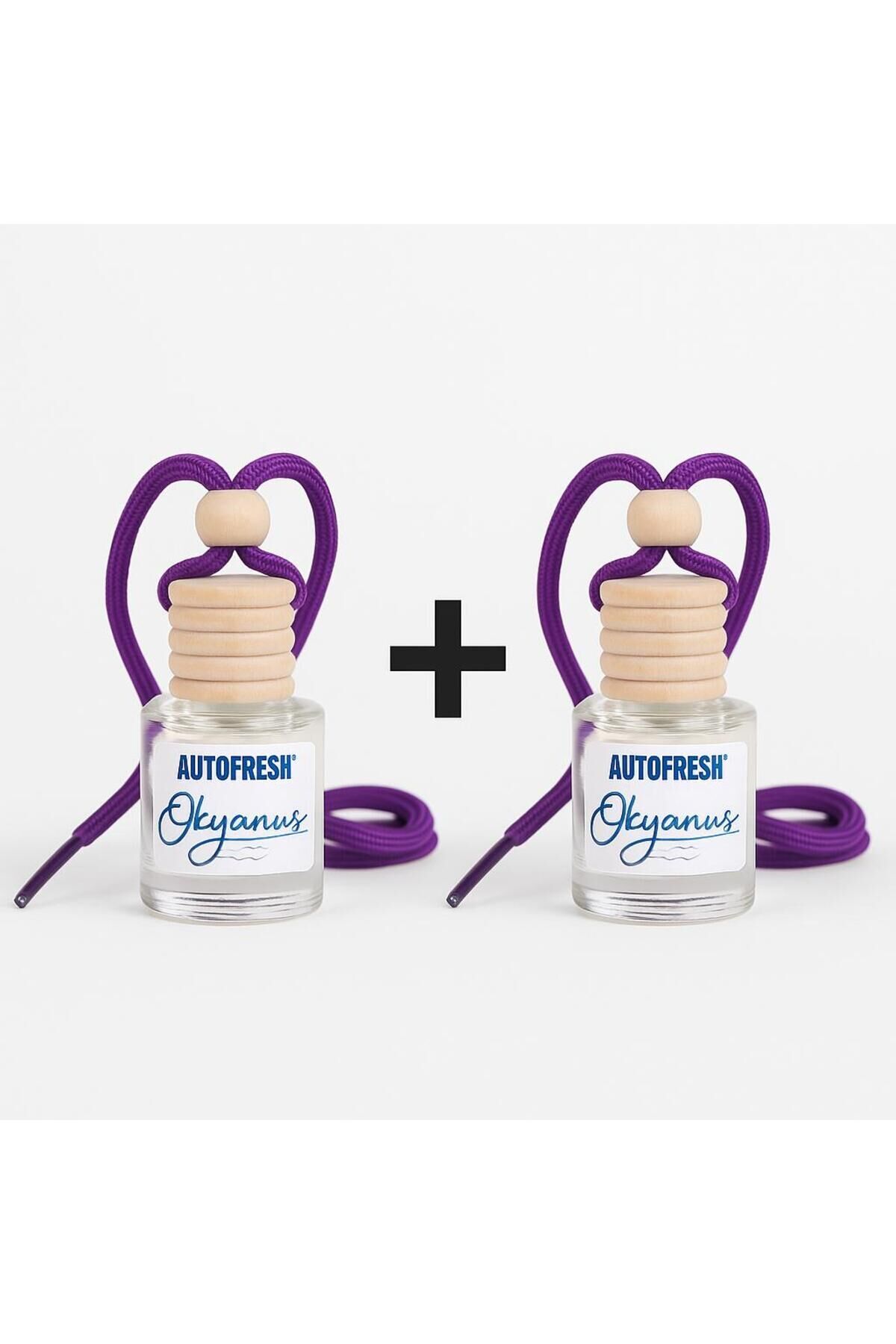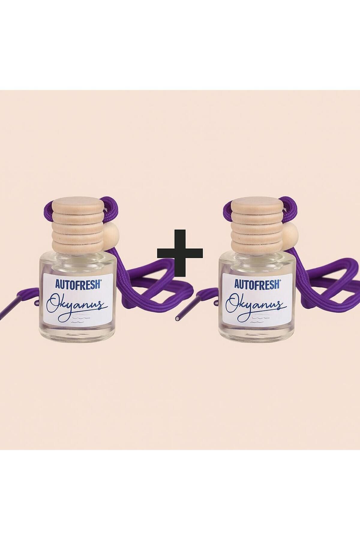 Aracınızda deniz esintisinin ferahlığını her an hissedin! Özel formüllü asma tipi cam şişe koku, hem şık görünümüyle aracınıza tarz katar hem de uzun süre etkili ferahlık sağlar.; Öne Çıkan Özellikler: * Okyanus esintili ferah ve temiz koku * Asma ipli tasarım – dikiz aynasına, vantilatör ızgarasına veya evinize asılabilir * Uzun süre kalıcılık sağlayan özel formül * Şık cam şişe ve doğal ahşap kapak * Koku yoğunluğunu kolayca ayarlayabilme Kutu İçeriği: * 2 x AUTOFRESH Okyanus Asma Araç Kokusu (Cam Şişe)