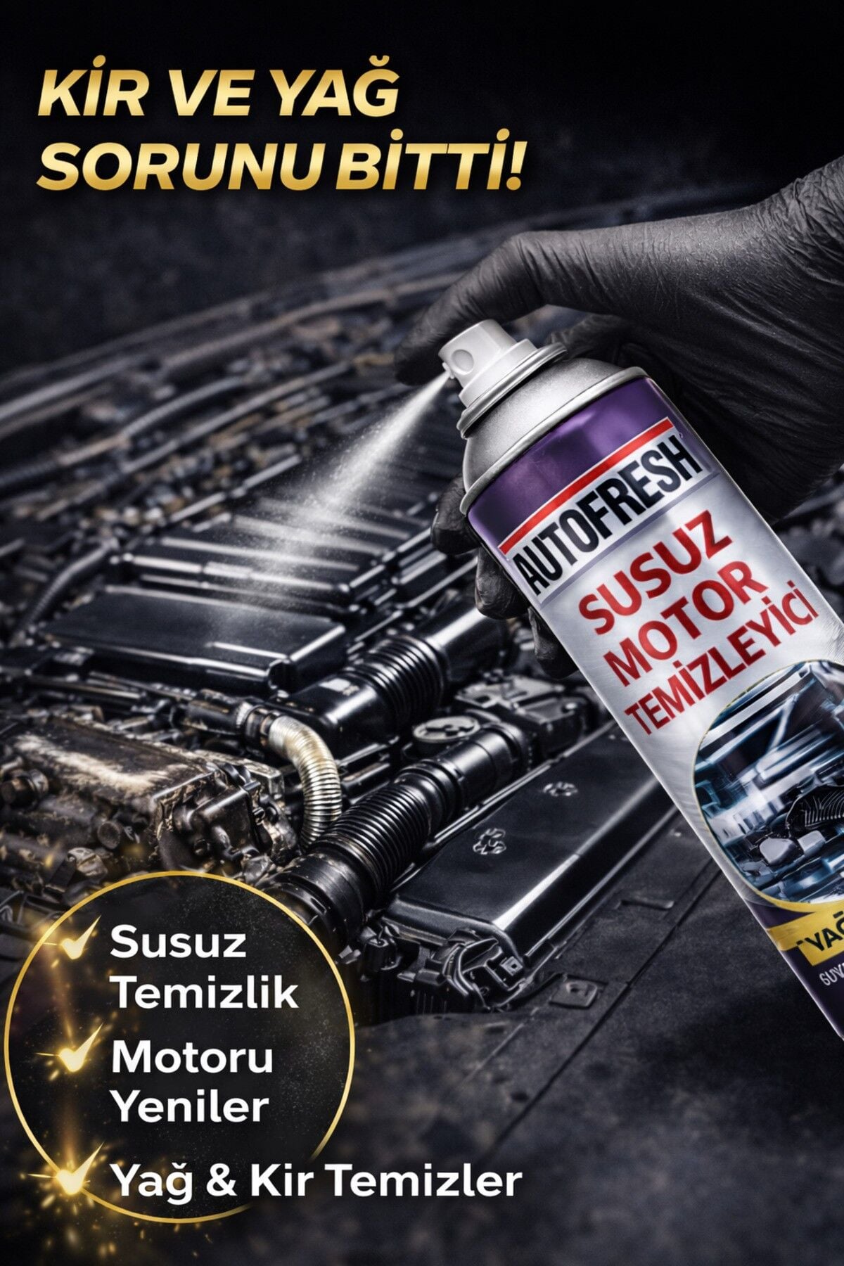Susuz Motor Temizleyici Sprey 500 ml – Yağ & Gres Çözücü, Parlatıcı Etkili Motor Temizliği